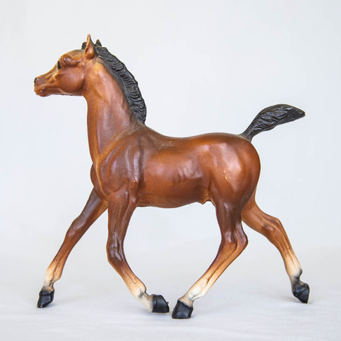 What I Bought: Next up it's a Running Foal! The bay Running Foal is one of, if not the most common of all 1970s chalkies - so they are usually a good bet when it looks like a chalky. And this one looks very very much like a basecoat chalky to me. I can't tell from the photos if there is a USA stamp but the paint job looks more 70s than 60s to me, so most likely. Still I like to grab them just in case of painted over deco and this one was only $9.99. I never like to say 100% but I am nearly 100% sure this is chalky... we can say 99%.